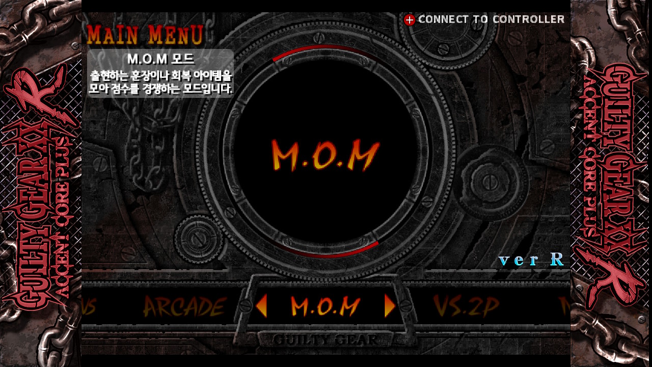 아케이드 모드와 MOM 모드 그리고 대전 모드가 있습니다.
