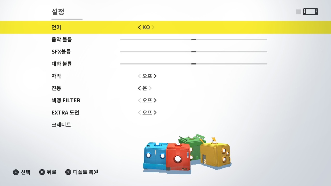 조이콘의 스틱을 위 아래로 움직여서 캐릭터의 얼굴 모양을 변경할 수 있습니다.