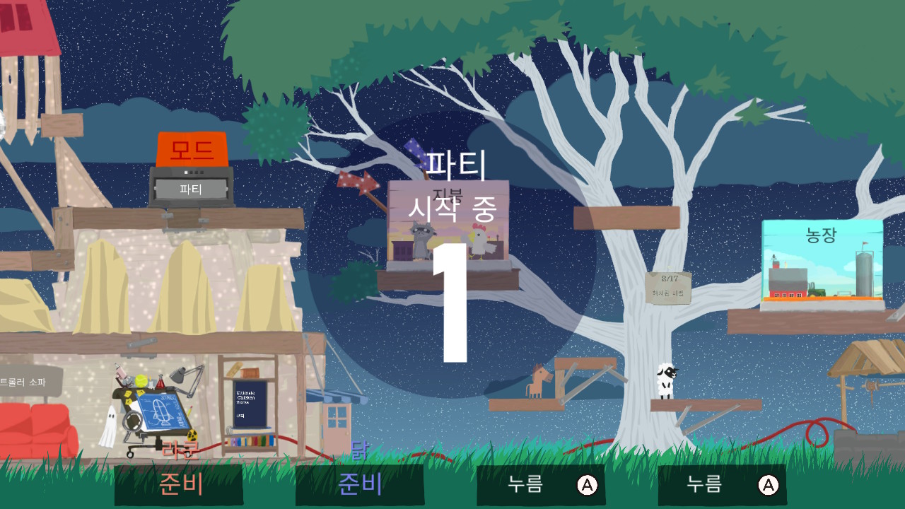 최대 4인까지 플레이가 가능하며, 말, 닭, 양, 너구리 중 하나를 고르시면 됩니다. 진행하다가 보면 추가적인 다른 캐릭터도 고를 수 있게 된다고 합니다.