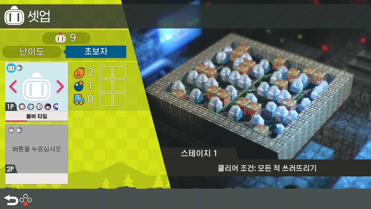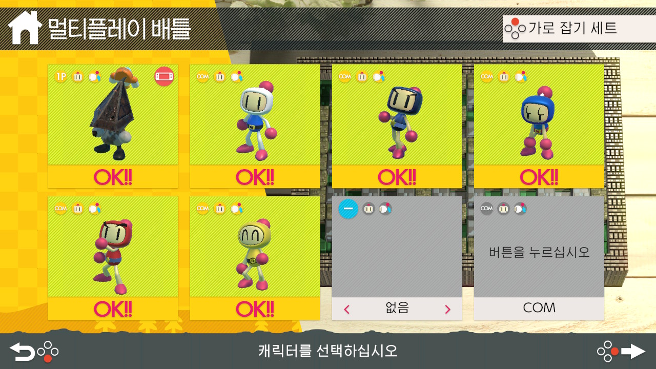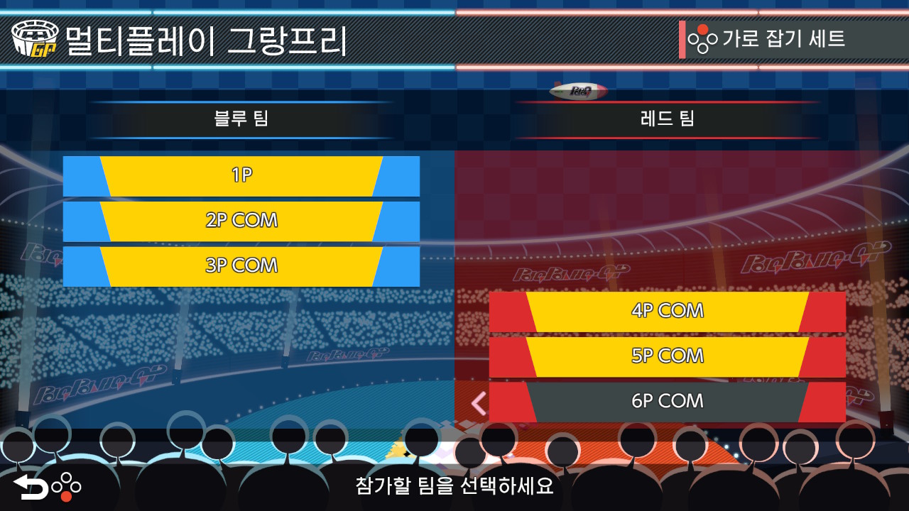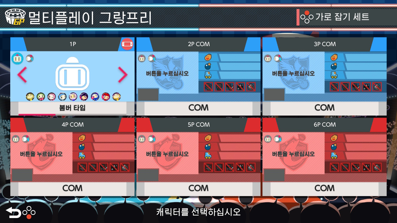 멀티플레이 배틀은 8인까지 플레이가 가능합니다. 나머지 자리는 컴퓨터로 채우거나 없음으로 선택할 수 있습니다.