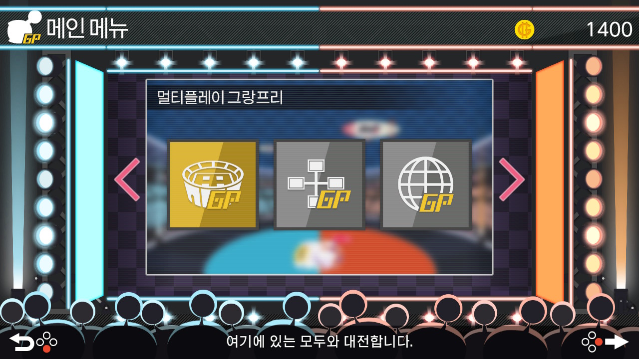 그랑프리는 멀티플레이, 로컬, 온라인 그랑프리로 나누어 집니다.