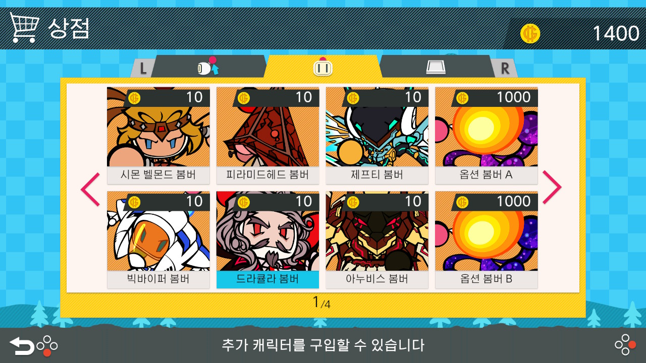 상점에서는 캐릭터와 아이템을 구매할 수도 있습니다.